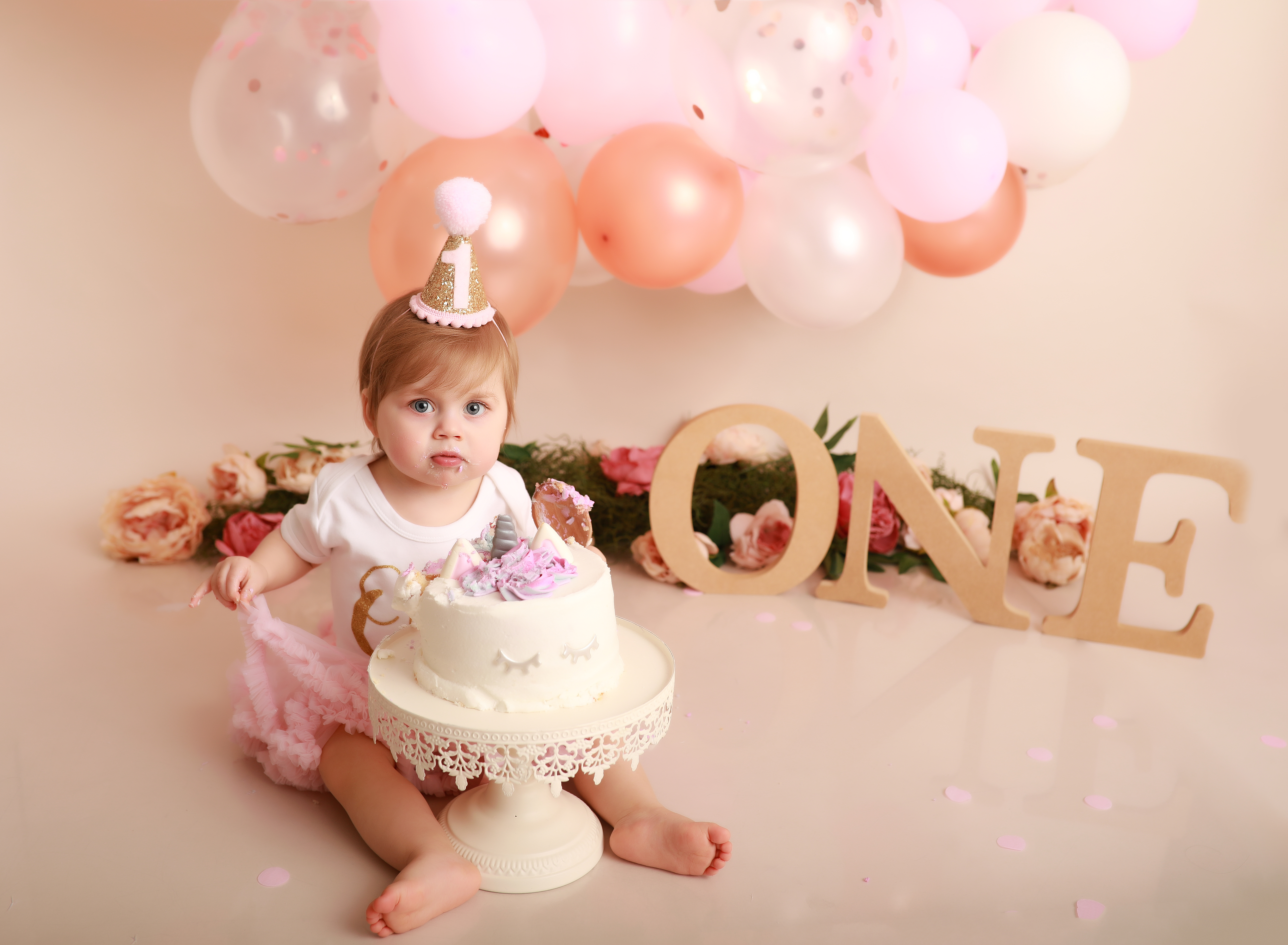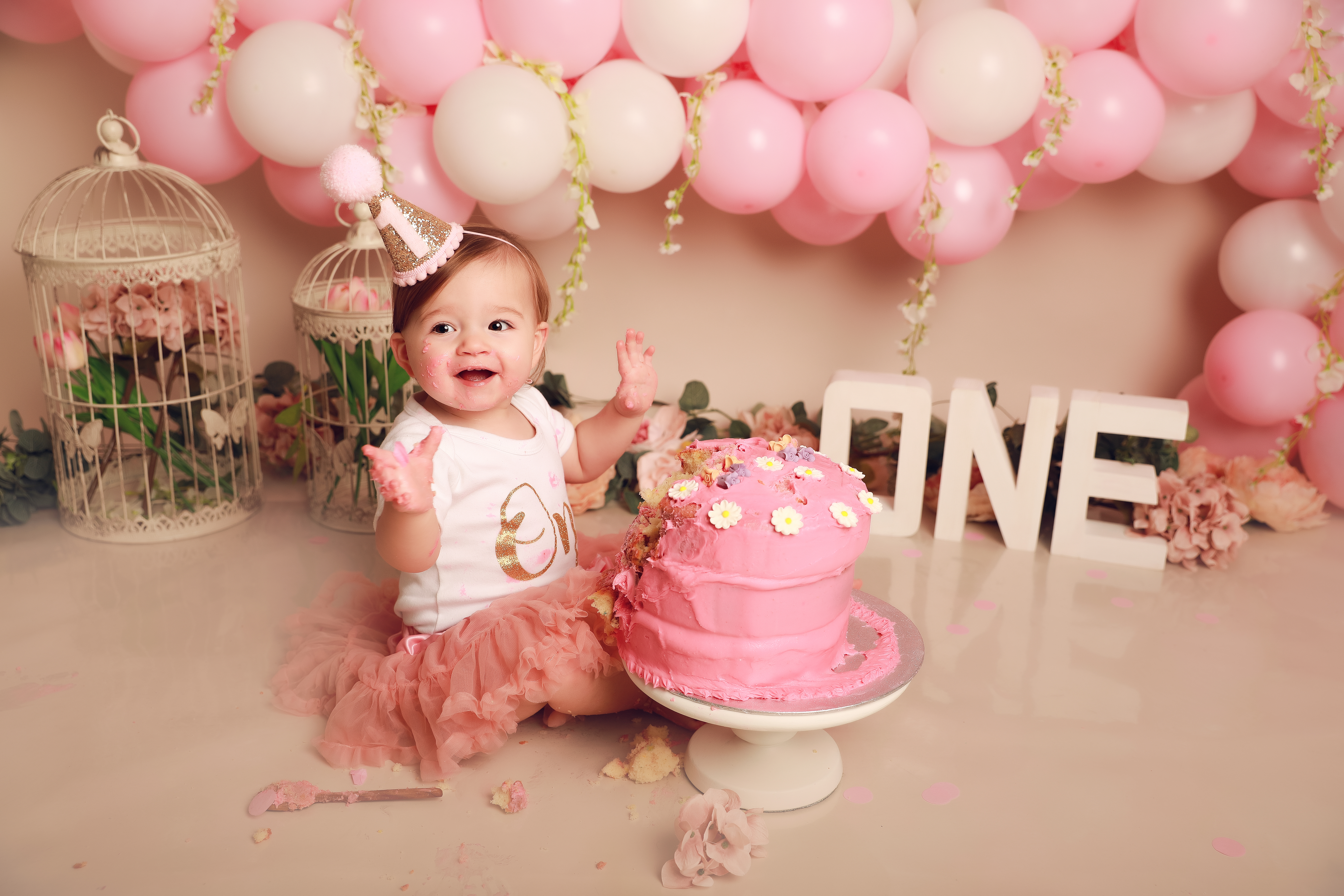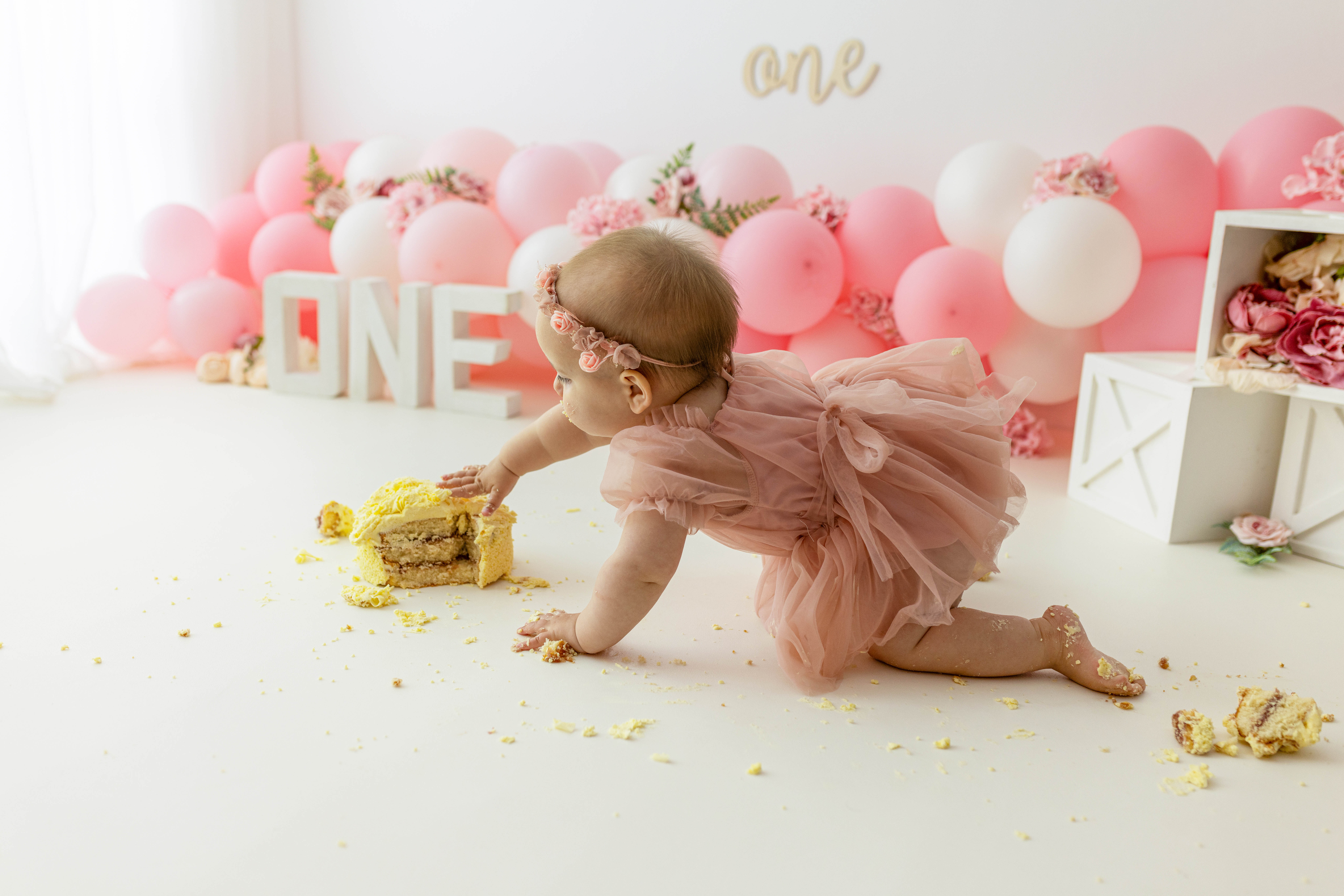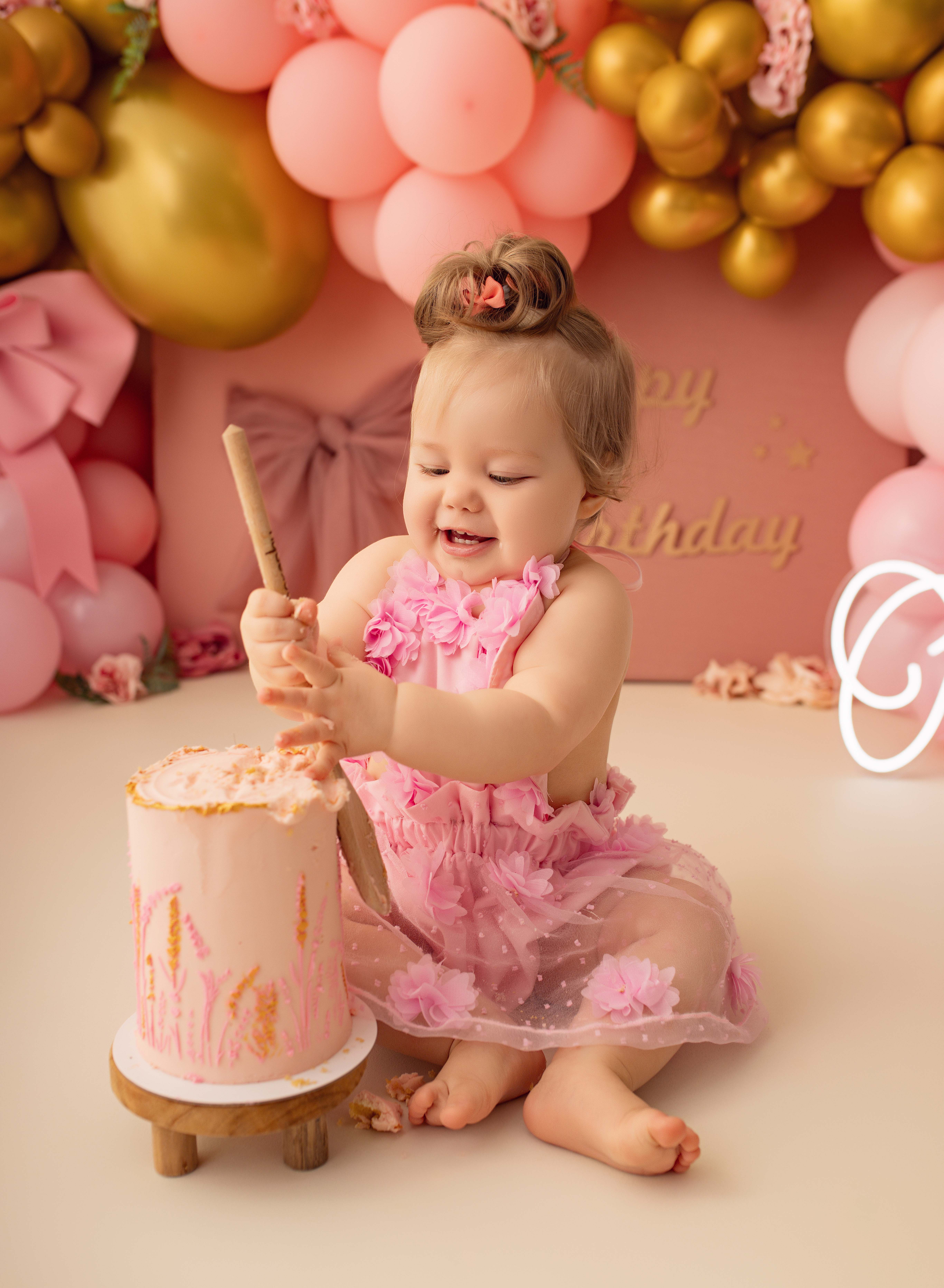 The cake smash session fee is just £50. It includes up to one hour in my studio and full use of props, outfits, decorations, and accessories. The session fee is deducted from any of the packages.