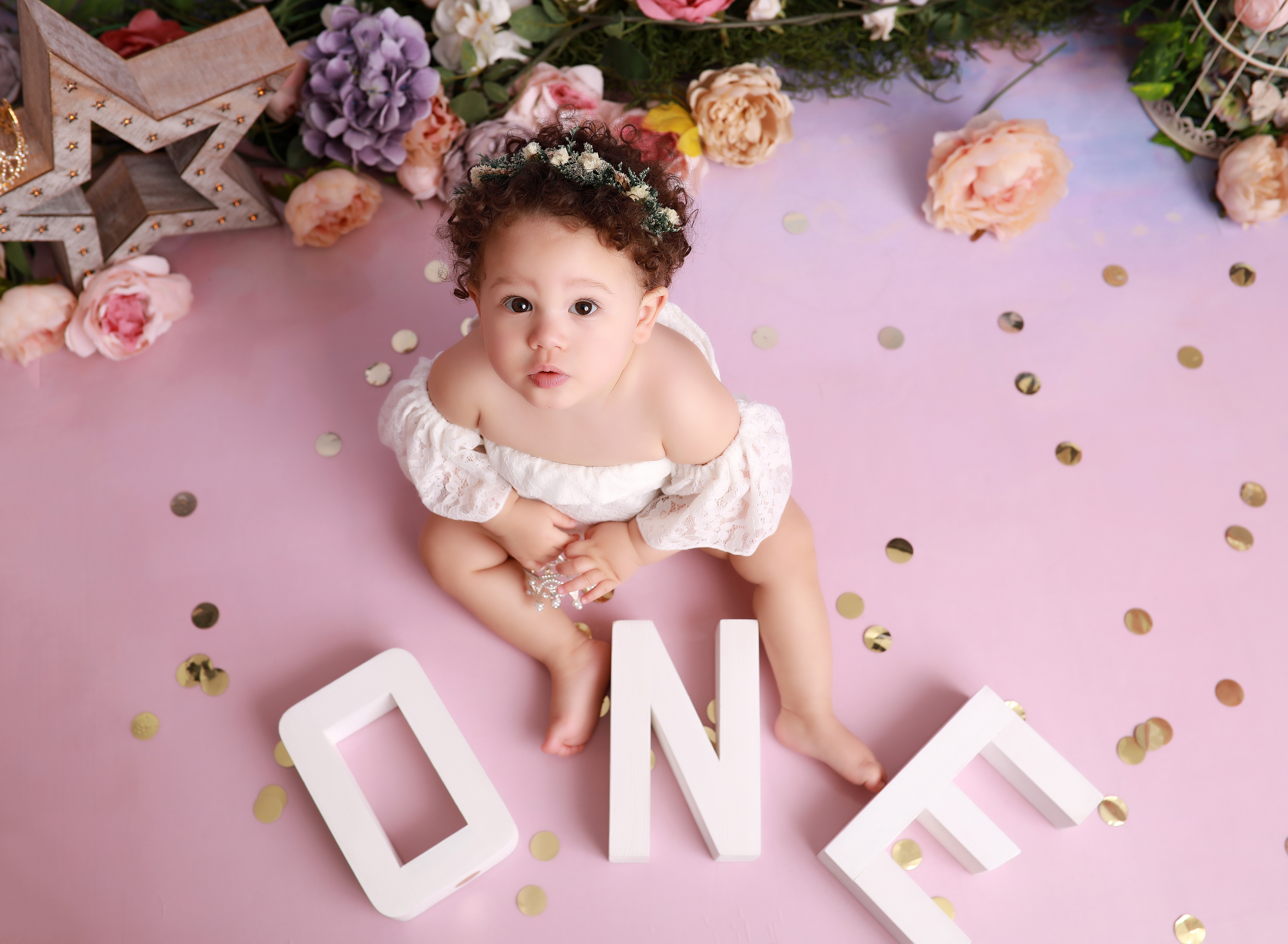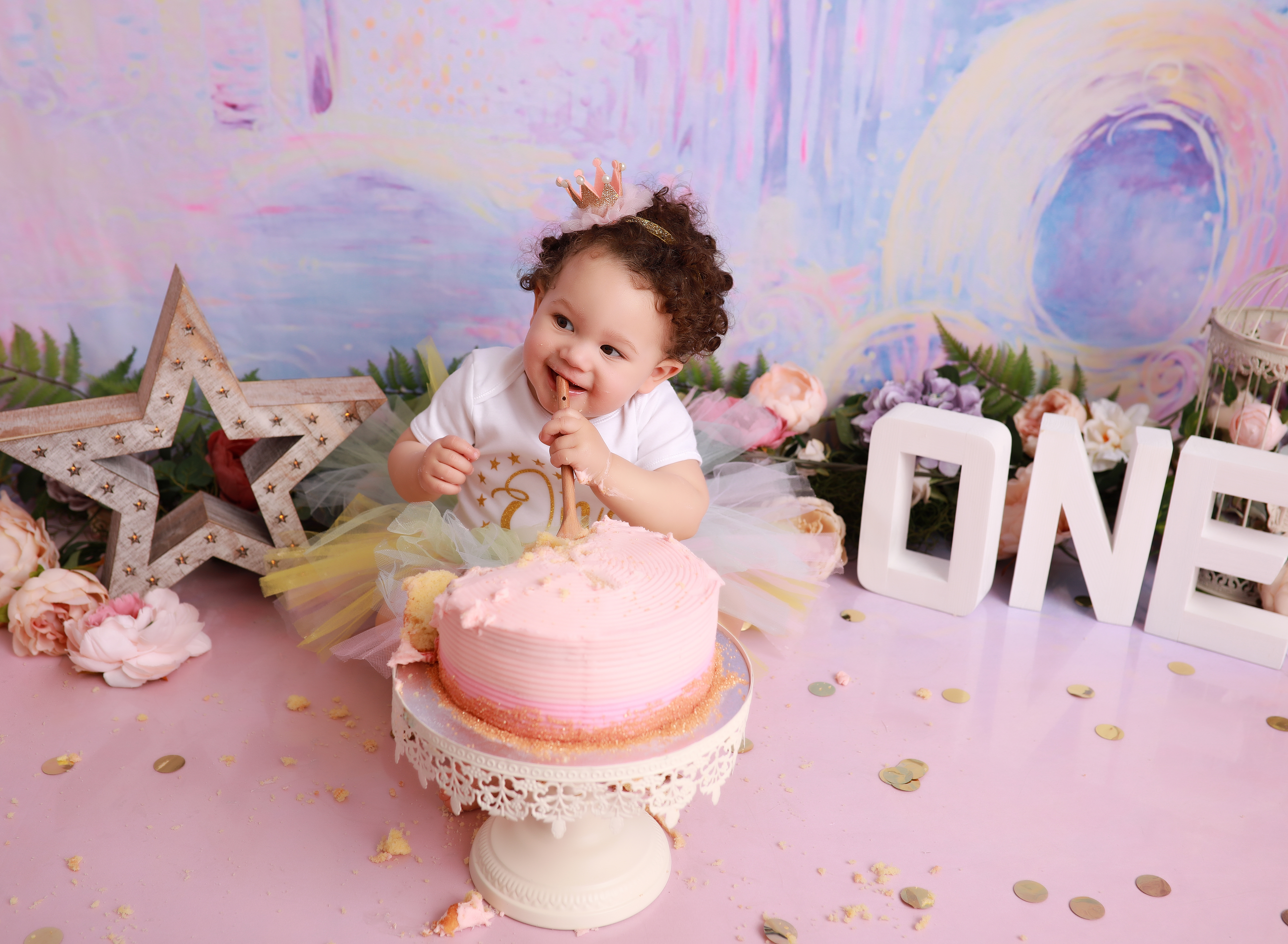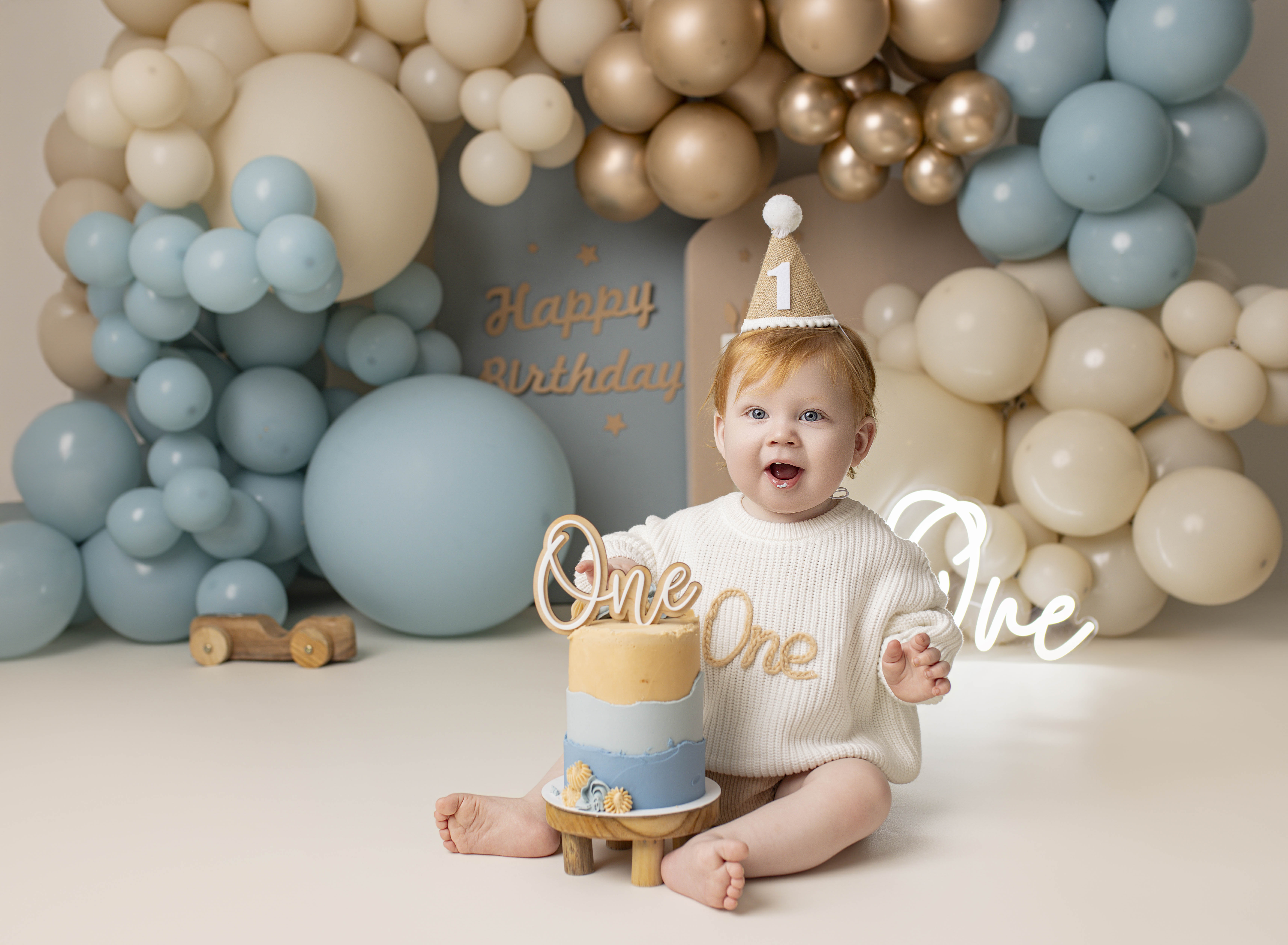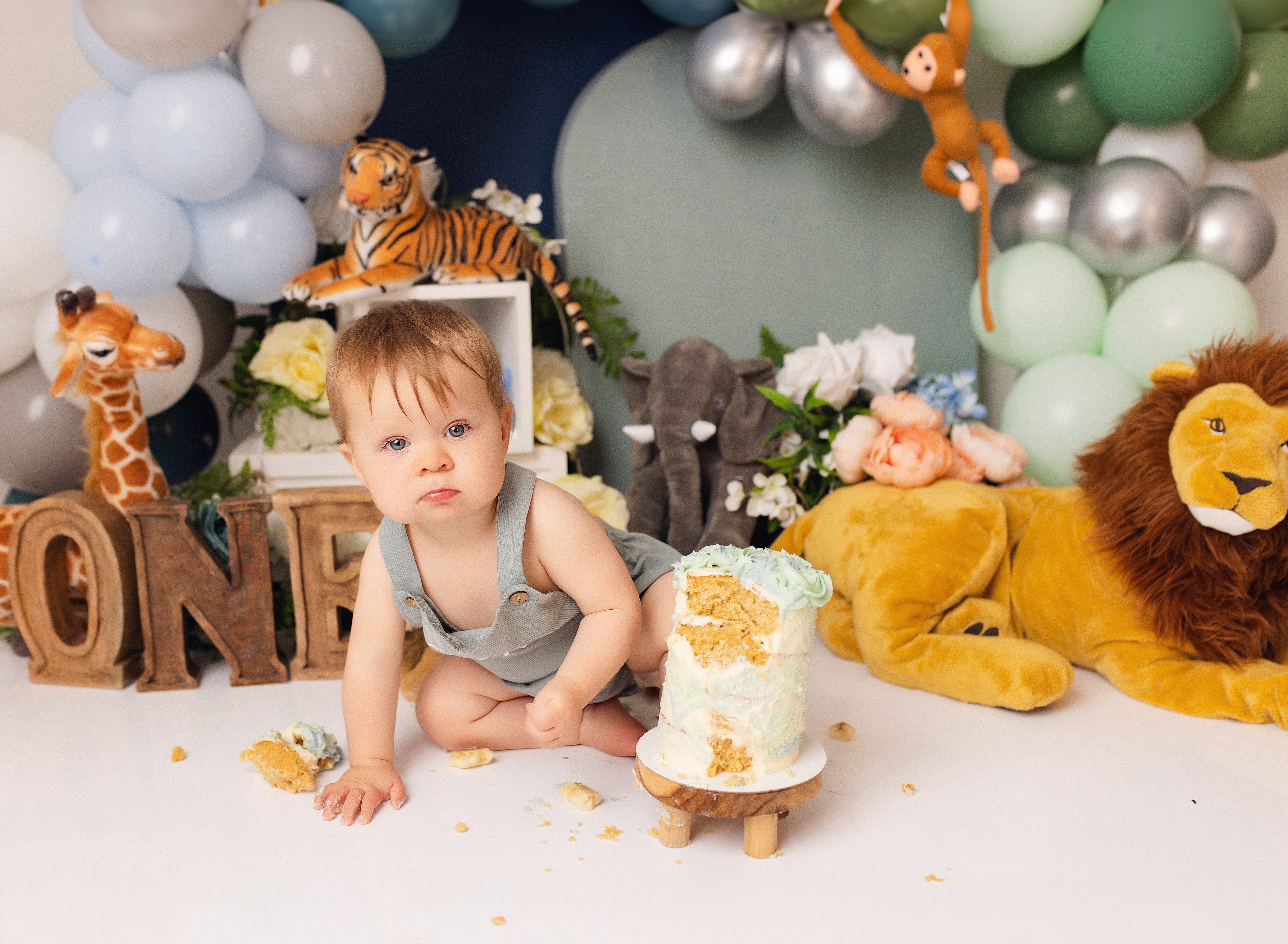 The cake smash session fee is just £50. It includes up to one hour in my studio and full use of props, outfits, decorations, and accessories. The session fee is deducted from any of the packages.