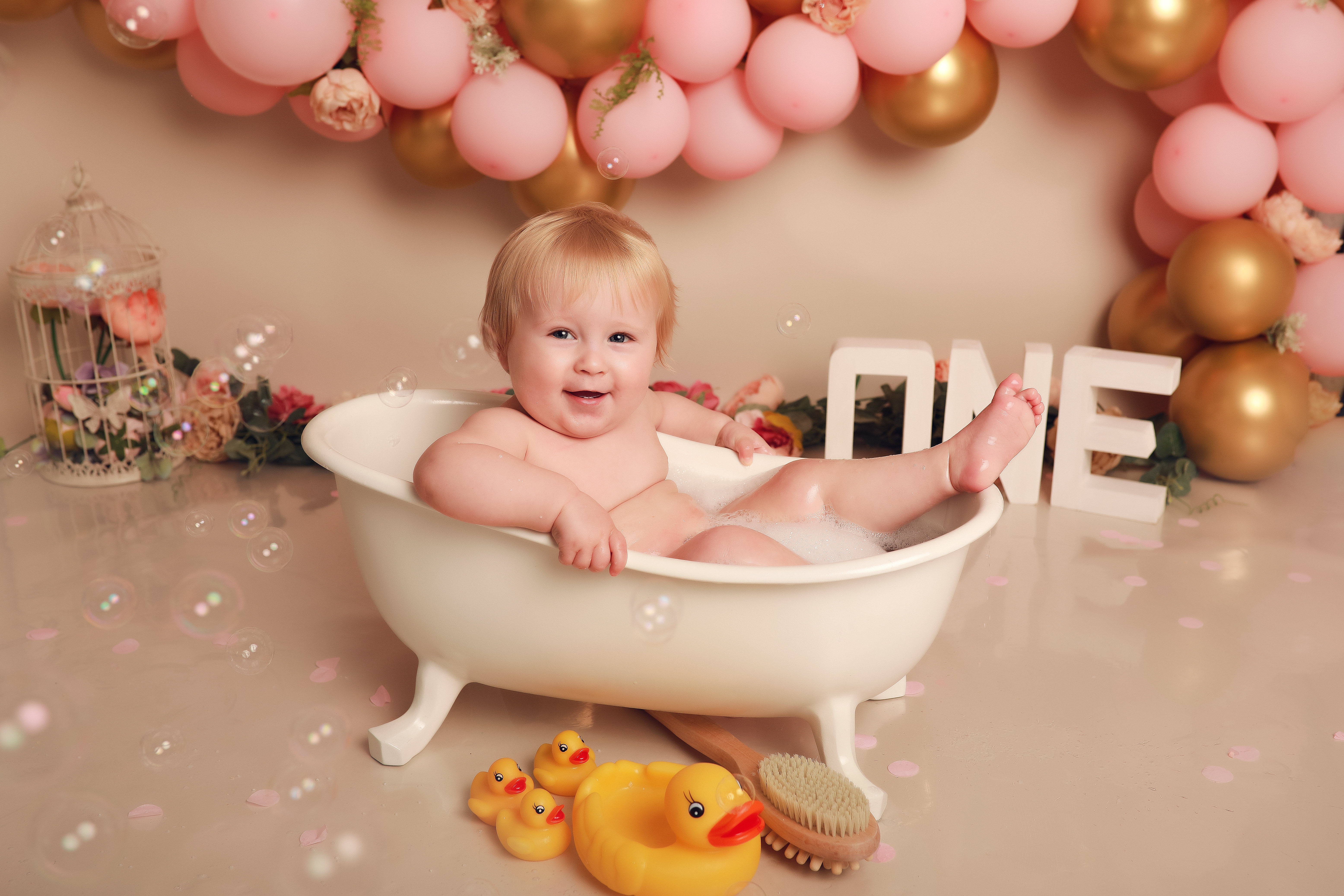 Your session will consist of a portrait session, a cake smash, and a splash in the bath at my home studio.